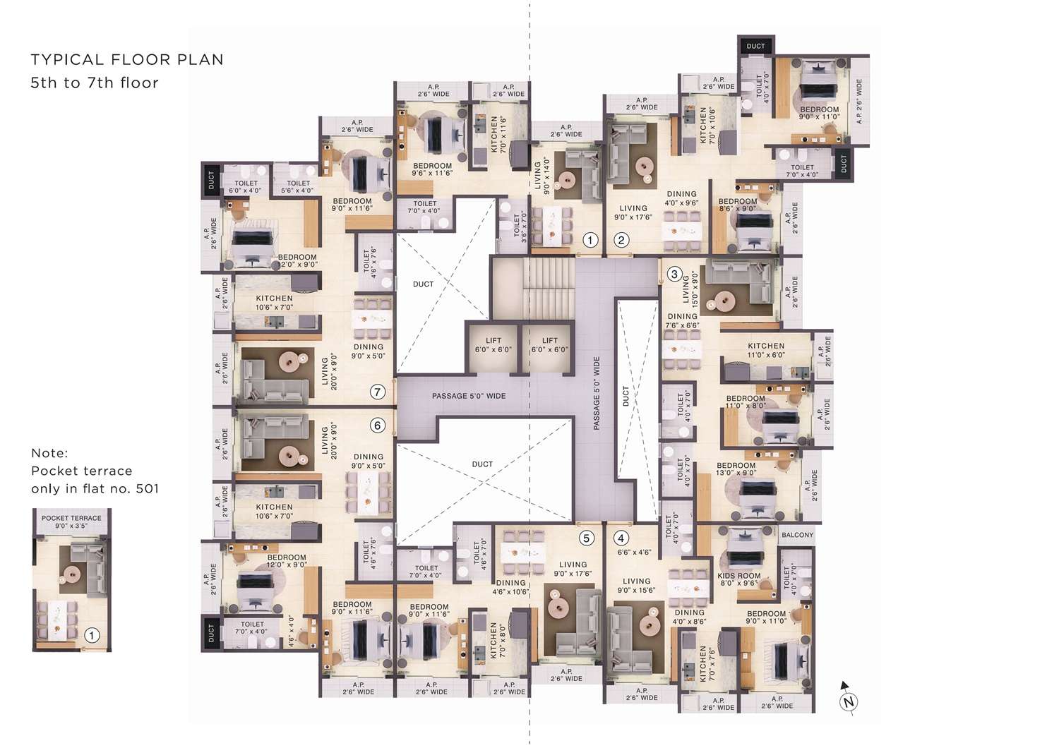 We believe your home should be your retreat. Residents will enjoy a fully equipped modern gymnasium, a party lawn for community gatherings, and senior citizen sit-out zones. Inside, every apartment features premium vitrified flooring, granite kitchen platforms, and branded electrical fittings, all serviced by high-speed elevators with power backup.